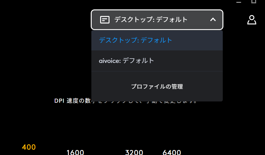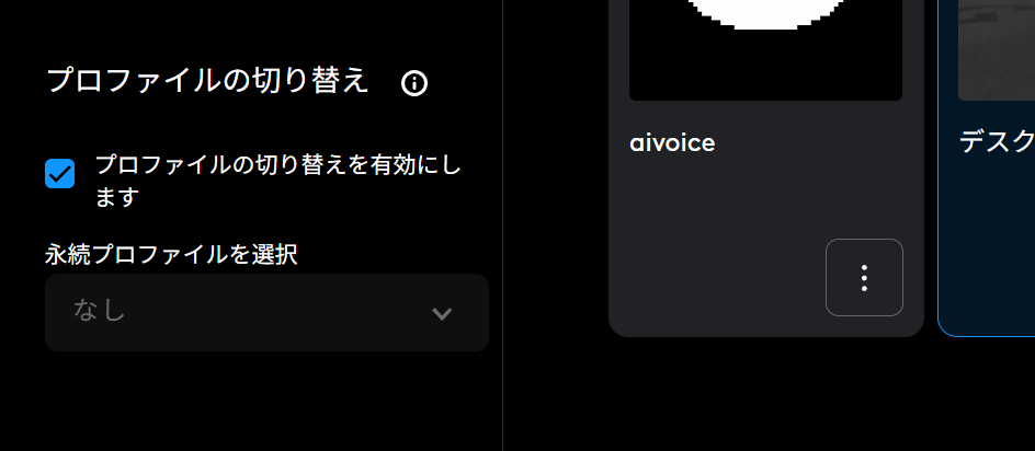 右上のプルダウンから「aivoice:デフォルト」を選択して、設定を変更するプロファイルを切り替えましょう。